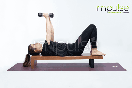 Die Schulter bleibt immer über dem Ellenbogen im rechten WinkelImmer auch die andere Körperseite mittrainieren.