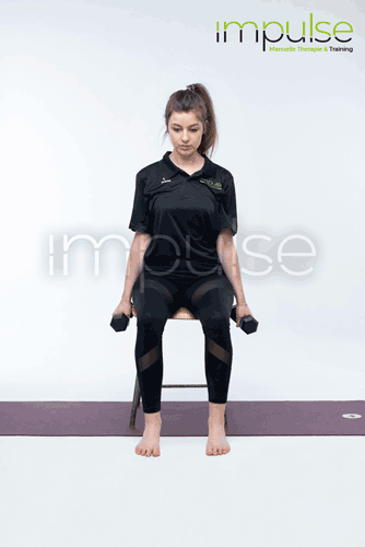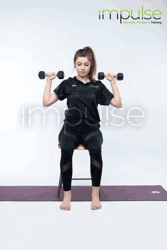Der Ellenbogen bleibt im rechten Winkel und entfernt sich nicht vom KörperImmer auch die andere Körperseite mittrainieren.