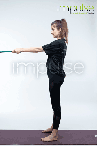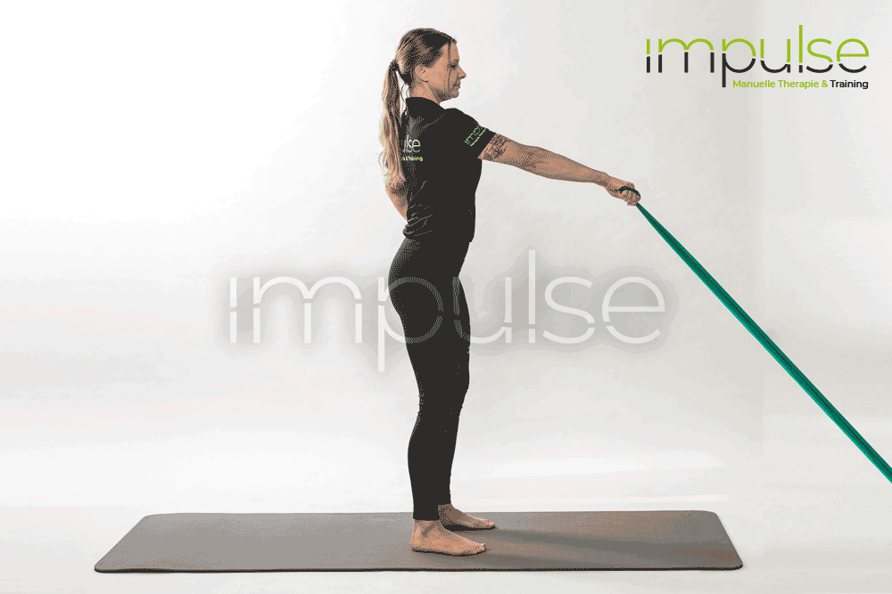 Schulterinnenrotation mit Trainingsband vor dem Körper