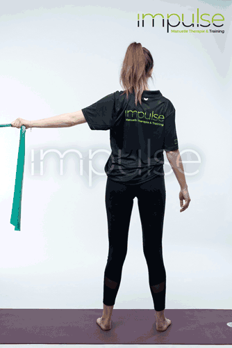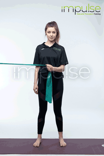 Schulterinnenrotation mit Trainingsband hinter dem Körper