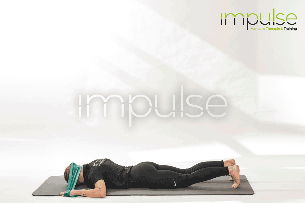 Die Übung kann auch im Stand, in Seitlage oder in Rückenlage durchgeführt werden.